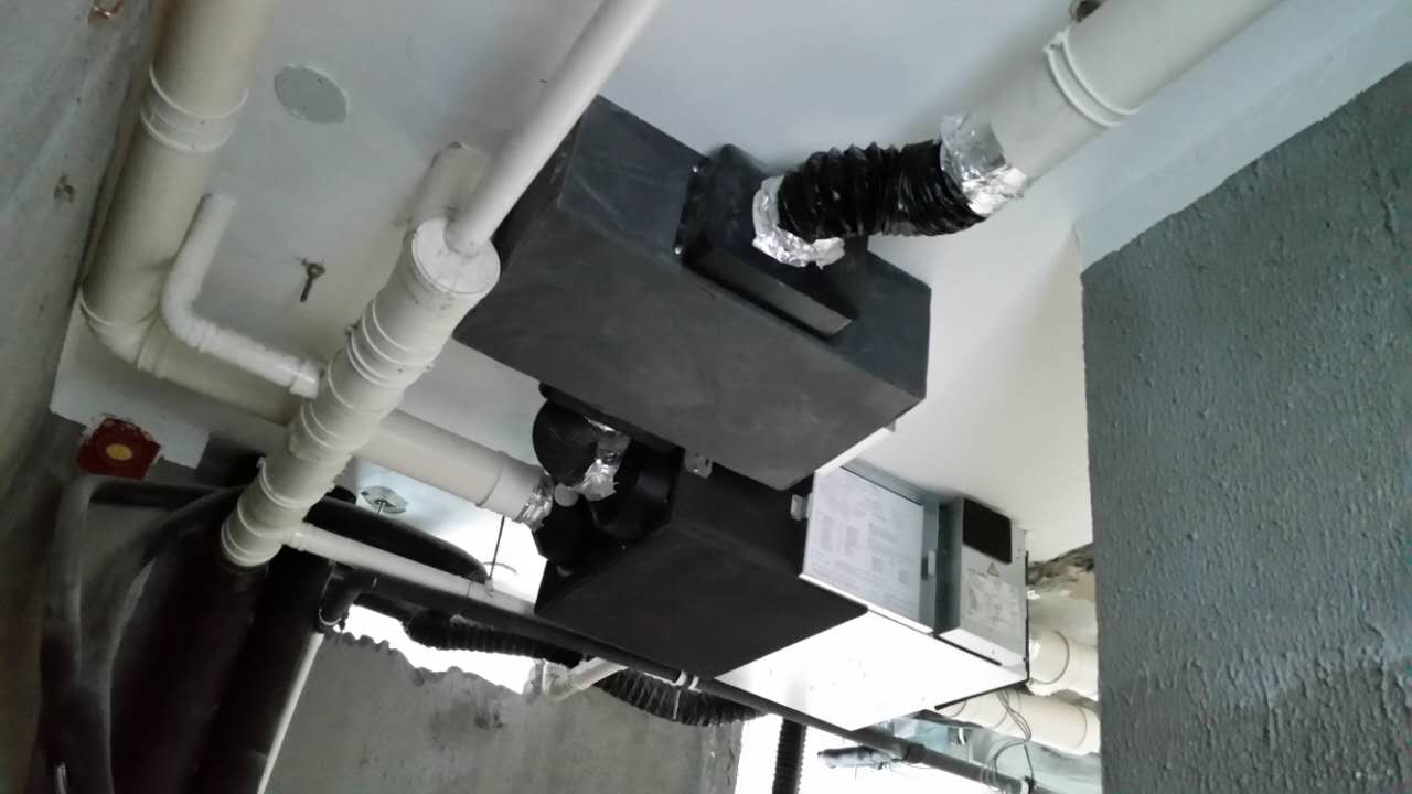 1. 中央新風,選配了250風量的全熱交換機,將主機掛在廚房的頂上,離外墻近,也不會影響業主平時的起居。客餐廳留了兩個新風口,一個回風口,主臥、次臥、兒童房都留了新風口、回風口。