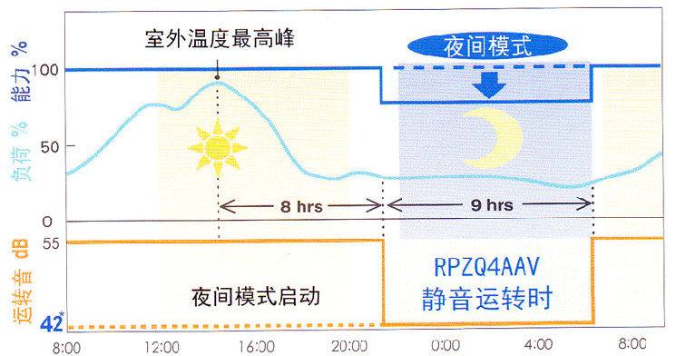 大金家用中央空調VRV P系列室外機靜音技術主要體現在以下兩點: